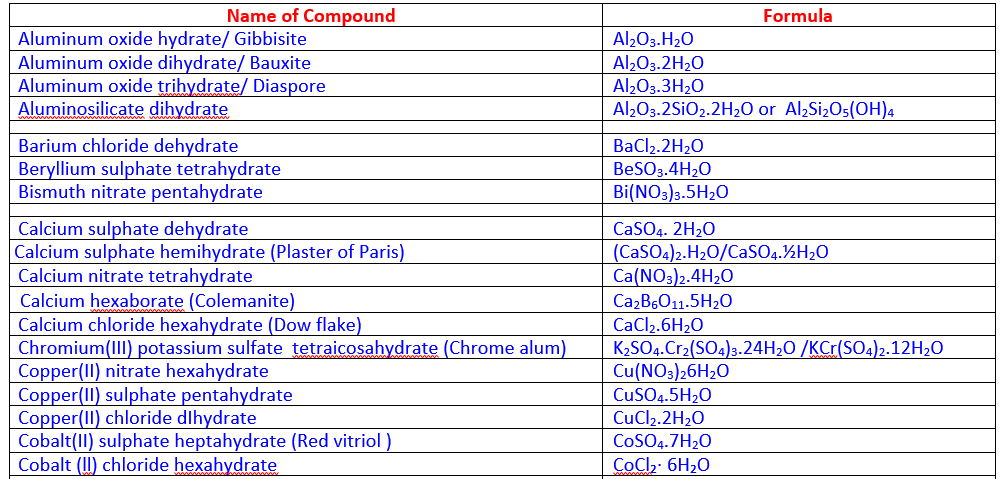 List of Important Acids List of important Bases Important salts and hydrates a…