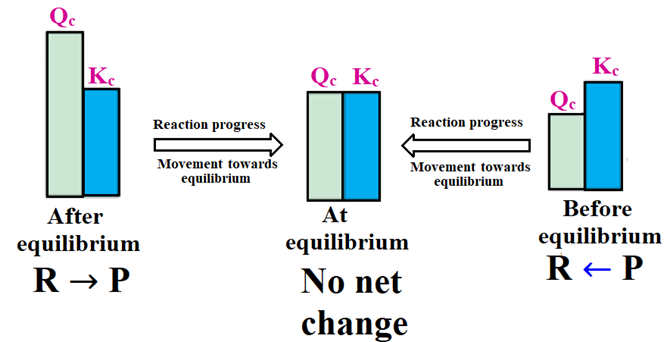 Direction of a reaction at a particular moment can be predicted by inserting the concentration of the reactants and products at that particular moment in the equilibrium expression. The reaction quotient Qc is useful because it predicts the direction of the reaction by comparing the value of Qc with Kc .