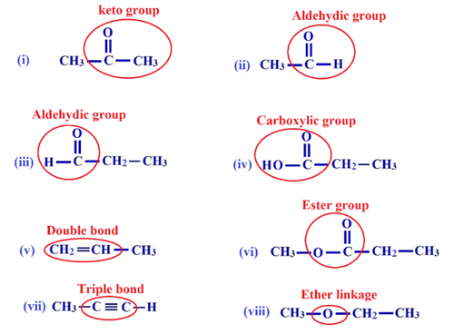 Epoxide group, Carbonyl group, Olefinic double bond, Ether linkage, Sulphonic acid group, Nitrile group